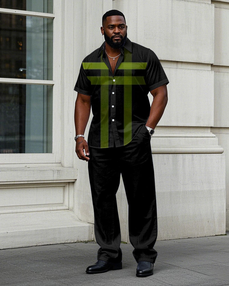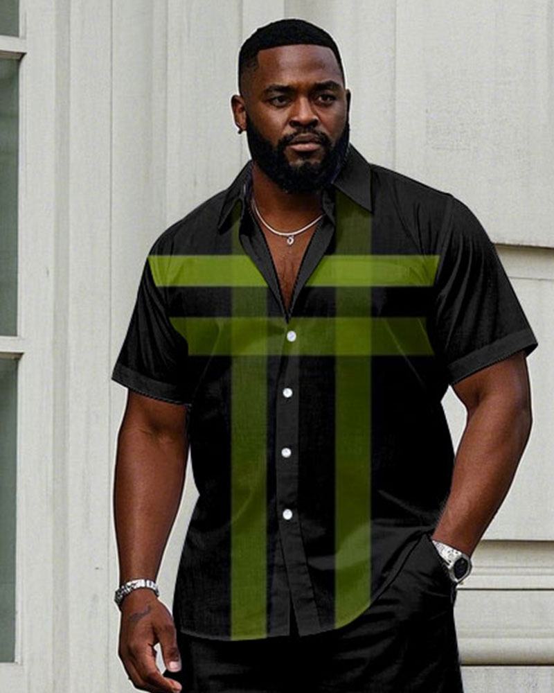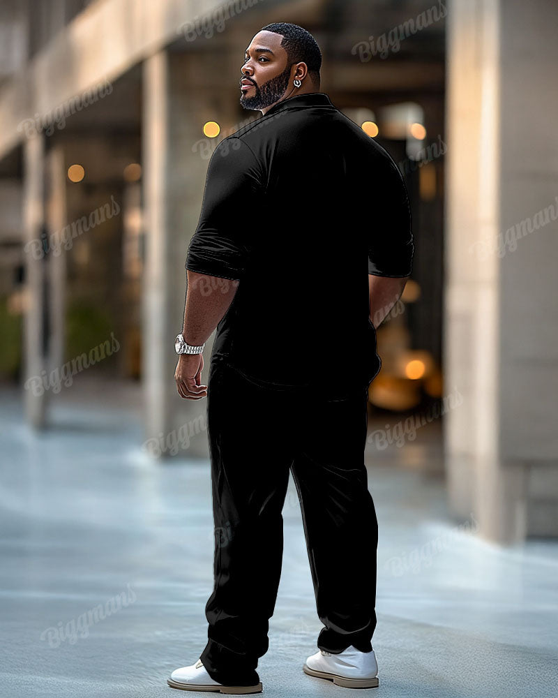 Men’s Big & Tall Vintage Black And White Color Block Pattern Printing Long Sleeve Shirt Trousers Set