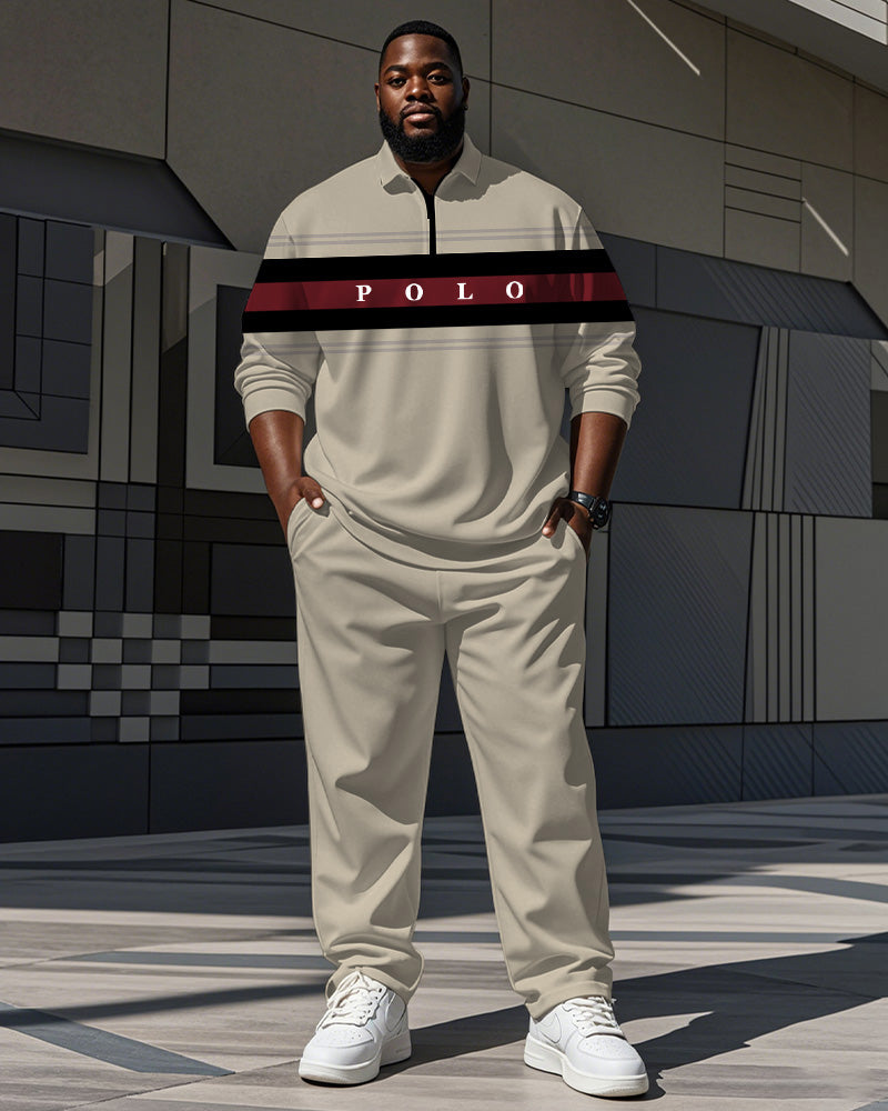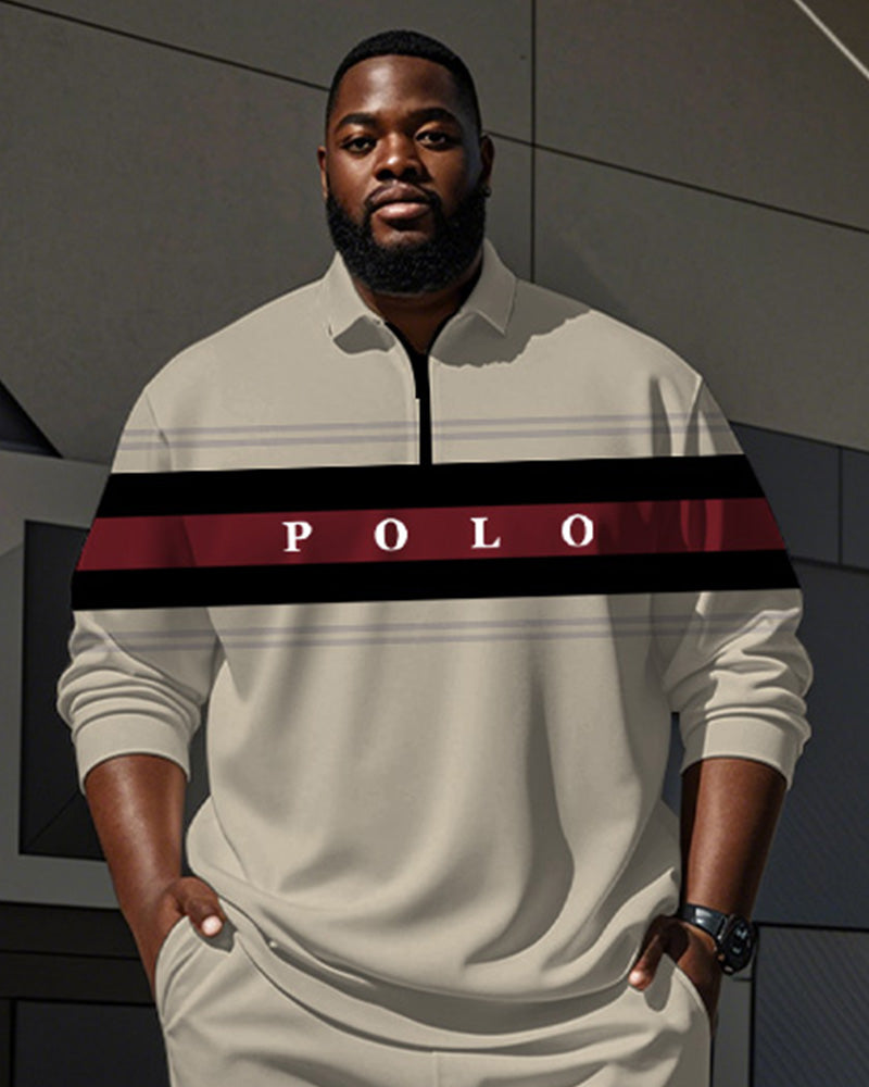 $45.00 – $86.00Price range: $45.00 through $86.00Description Sporty meets smart in this big & tall men’s polo set with fresh striped and “POLO” letter prints. The zip-up collar adds a modern twist, while the breathable fabric keeps you comfortable. With a fit that’s relaxed yet flattering, this set works just as well for your weekend plans…