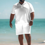 All-Match Solid Color White Polo Shirt Shorts Set Men’s Big and Tall