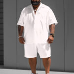 This pure white short-sleeve shirt and shorts set for the big guy reflects the essence of minimalist style. The loose cut provides a comfortable wearing experience, particularly suitable for large-built men. Simple yet fashionable, the versatile white set allows you to handle various occasions.
