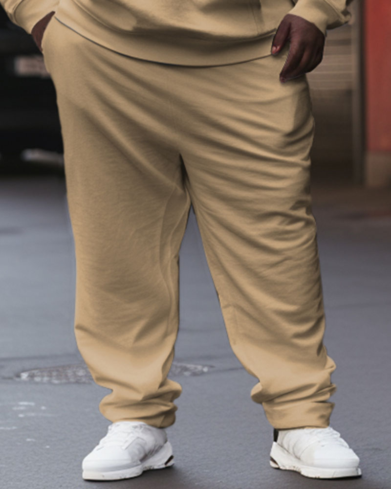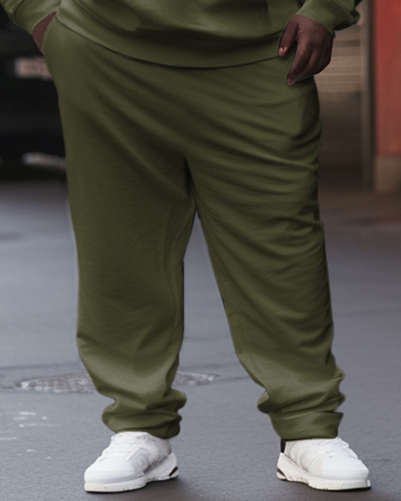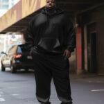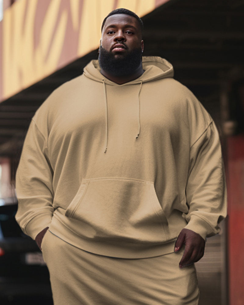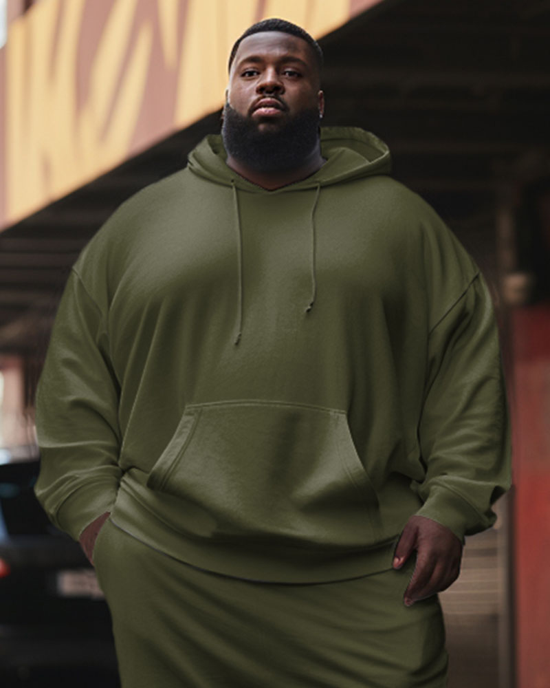 Big Guys 2-Piece Tracksuit Solid Color Hoodie & Pants Set