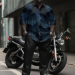 Big Guy’s Casual Business Geometric Long Sleeve Shirt Pants Set