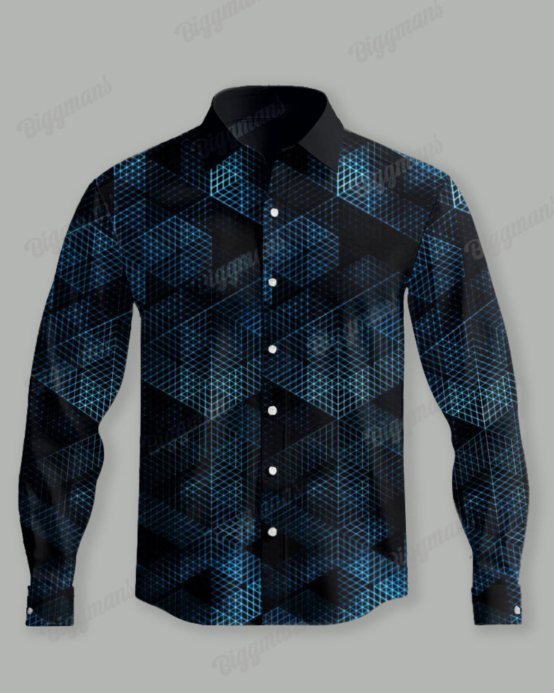 Big Guy's Casual Business Geometric Long Sleeve Shirt Pants Set
