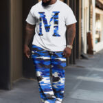 This camouflage short-sleeve T-shirt and pants set for big guys is a creative fashion outfit. Street, casual, and hip-hop styles are all available, making it easy to create your trendy attitude. Whether paired with sneakers or boots, you can become the focus of the street.