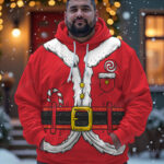 Get into this big guy’s red hoodie, designed with a fun Santa Claus look! Perfect for adding a playful touch to your celebrations, this hoodie brings holiday cheer and a sense of humor. Whether you’re dressing up for a party or spreading Christmas vibes, this comfy hoodie is the way to go.