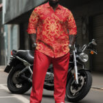 Make a dramatic statement with this eye-catching retro set for big guys, featuring luxuriant classical floral prints in vibrant crimson that command attention. The breathable fabric drapes elegantly while the artisan-grade digital printing ensures each bloom appears with museum-quality clarity.