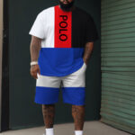 This short-sleeve T-shirt and shorts set for big men is full of street fashion with color block design and simple lettering. Its loose cut is an ideal choice for hot summer weather. Light and breathable, it’s suitable for daily casual wear.