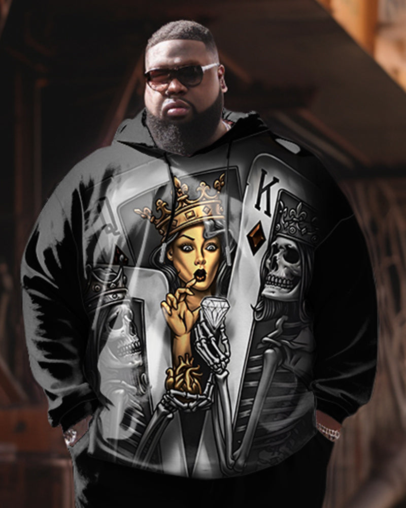 Big Men's 2 Piece Tracksuit Casual Poker Queen Hoodie Pants Set