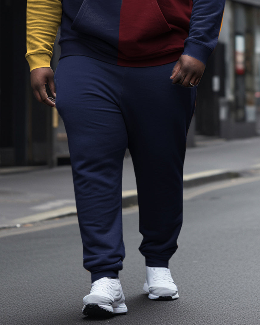 Elevate your casual wardrobe with this big men’s two-piece set, where bold color-block panels meet subtle typography for streetwear appeal. The premium fabric offers cloud-like comfort, while the engineered relaxed fit provides flattering proportions for larger frames. Ideal for everyday wear and casual sports.