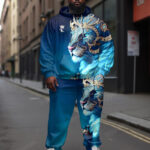 Make a powerful statement with this blue gradient hoodie set, featuring a bold print adorned with striking gold jewelry. Designed for a relaxed fit, this set combines comfort with a standout style. Why not try new styles? It’s a versatile choice that pairs easily with your favorite kicks.