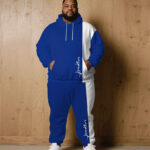 Big & Tall Men Fall/Winter Joker Casual Blue & White “Respect” Slogan Handwritten Printed Hoodie Suit
