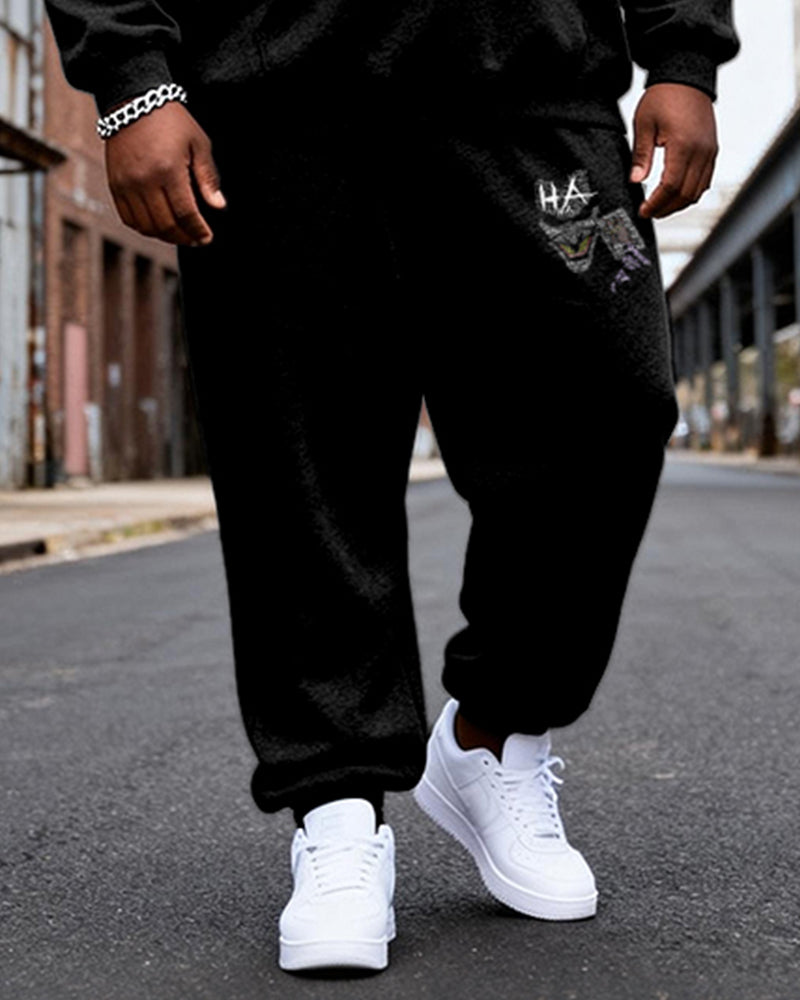 Big & Tall Men’s Black Ha Skull Letter Graffiti Print Hoodie Set