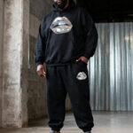 Big & Tall Men’s Black Metallic Lip-Print Hoodie Set