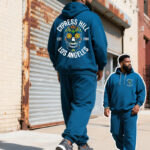 Big & Tall Men’s Blue Skull Graffiti Alphabet Print Hoodie Set