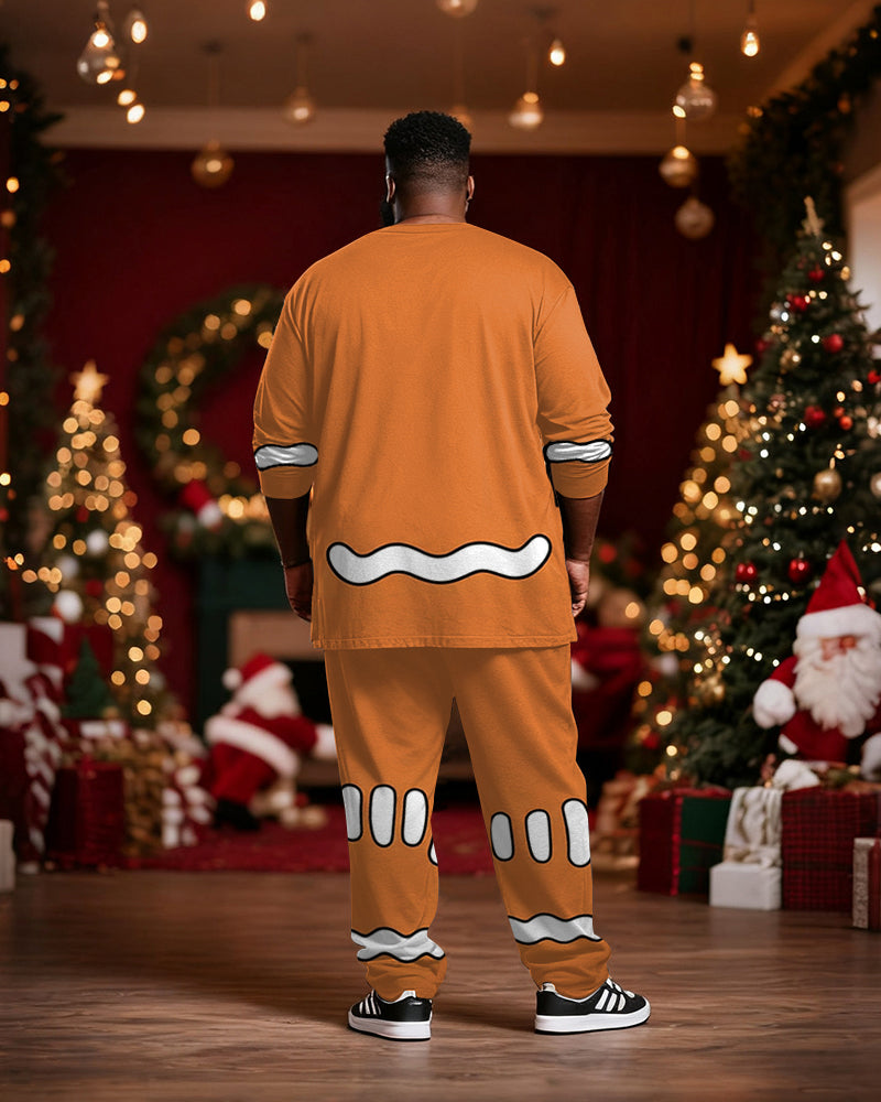 Big & Tall Men's Christmas Gingerbread Man Cosplay Printed Long Sleeve T-Shirt Trousers Suit