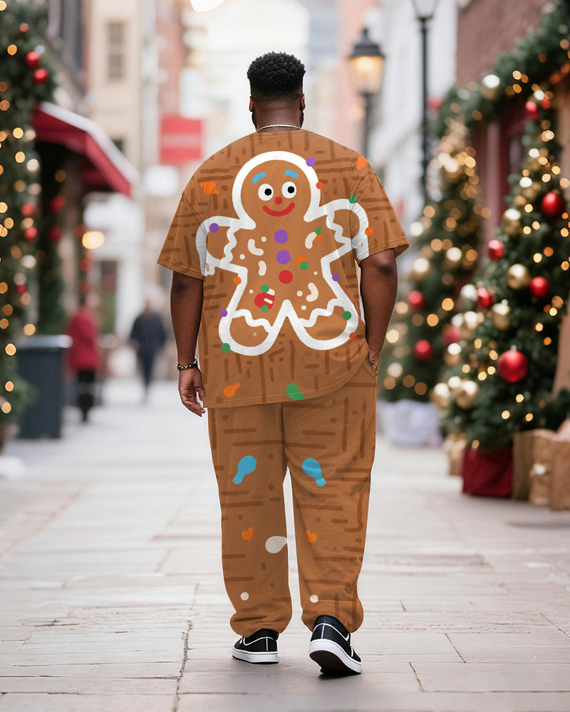 Big & Tall Men's Christmas Gingerbread Man Cosplay Printed T-Shirt Trousers Suit
