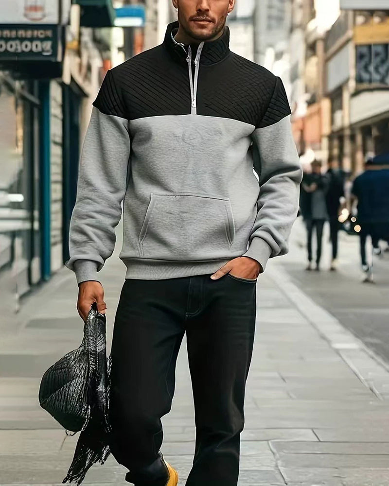 - Style: Colorblock Half-Zip Pullover Casual Sweat