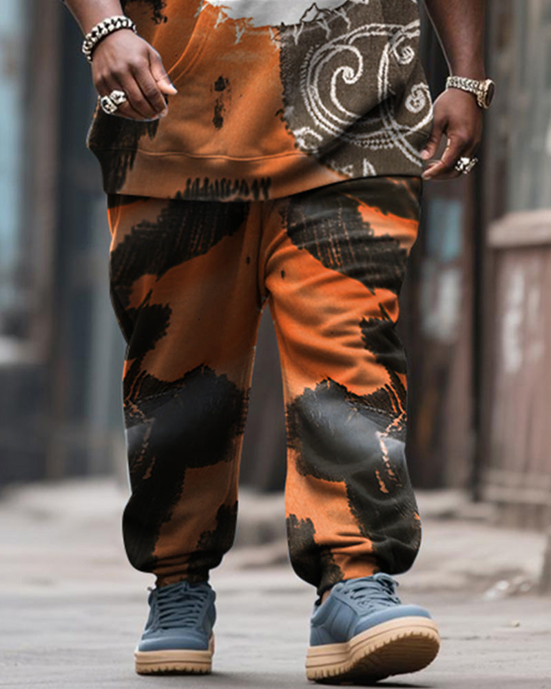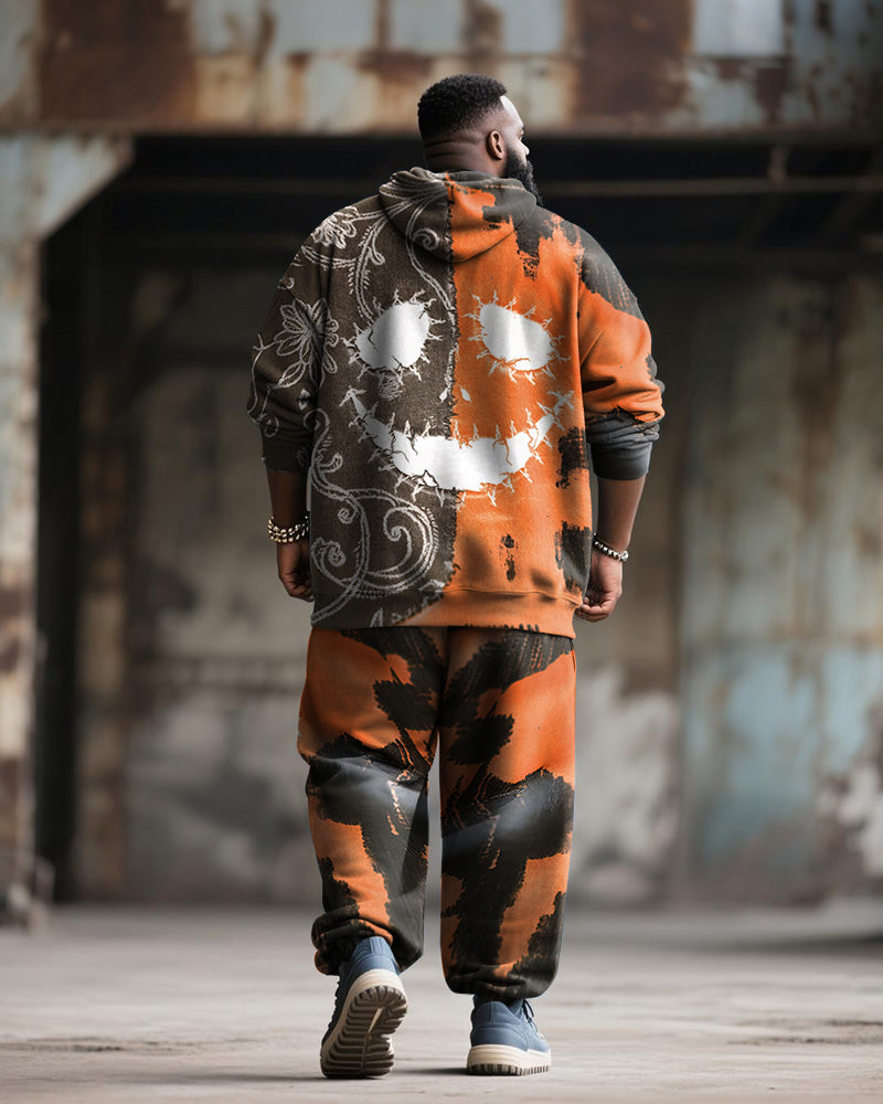 Big & Tall Men's Halloween Orange Pumpkin Facial Contrast Stitch Print Hoodie Suit