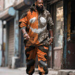 Big & Tall Men’s Halloween Orange Pumpkin Facial Contrast Stitch Print Hoodie Suit