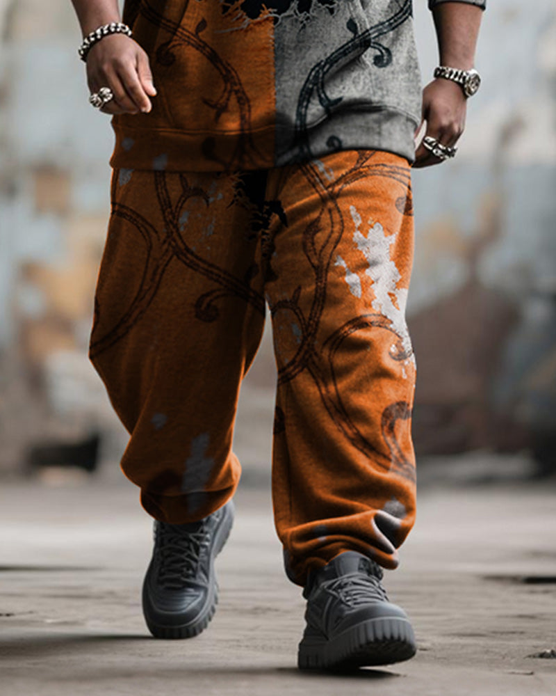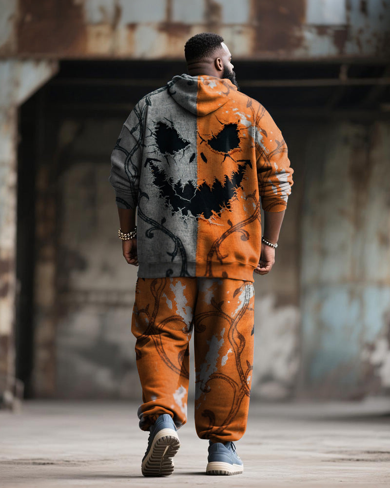 Big & Tall Men's Halloween Orange Pumpkin Facial Contrast Stitch Print Hoodie Suit