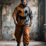 Big & Tall Men’s Halloween Orange Pumpkin Facial Contrast Stitch Print Hoodie Suit