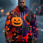 Big & Tall Men’s Halloween Pumpkin Grimace Stitch Graffiti Print Zipper Cardigan Hoodie