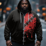 Big & Tall Men’s Halloween Stitching Drip Print Zipper Cardigan Hoodie
