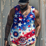 Big & Tall Men’s Independence Day Star Flag Tie-Dye Printed Round Neck Sleeveless Vest