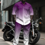 This features a purple gradient, exuding romance with its elegant violet tones. Crafted for comfort, it ensures a pleasant wearing experience on multiple occasions. With its gentlemanly style, this versatile set offers a chic, easygoing look.