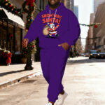 Big & Tall Men’s Purple “SNOW WAY SANTA” Snowman Santa Claus Print Hoodie Set