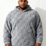 Big & Tall Men’s Solid Color Square Plaid Plush Hooded Sweatshirt S-2XL