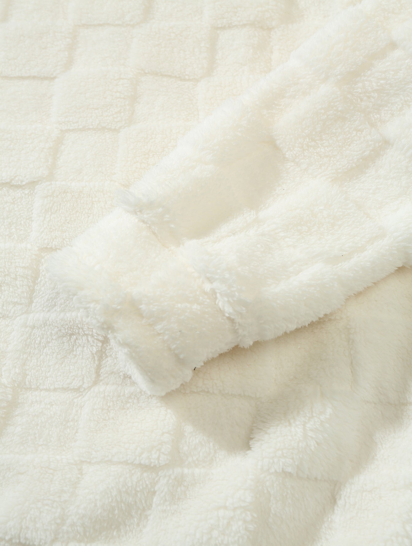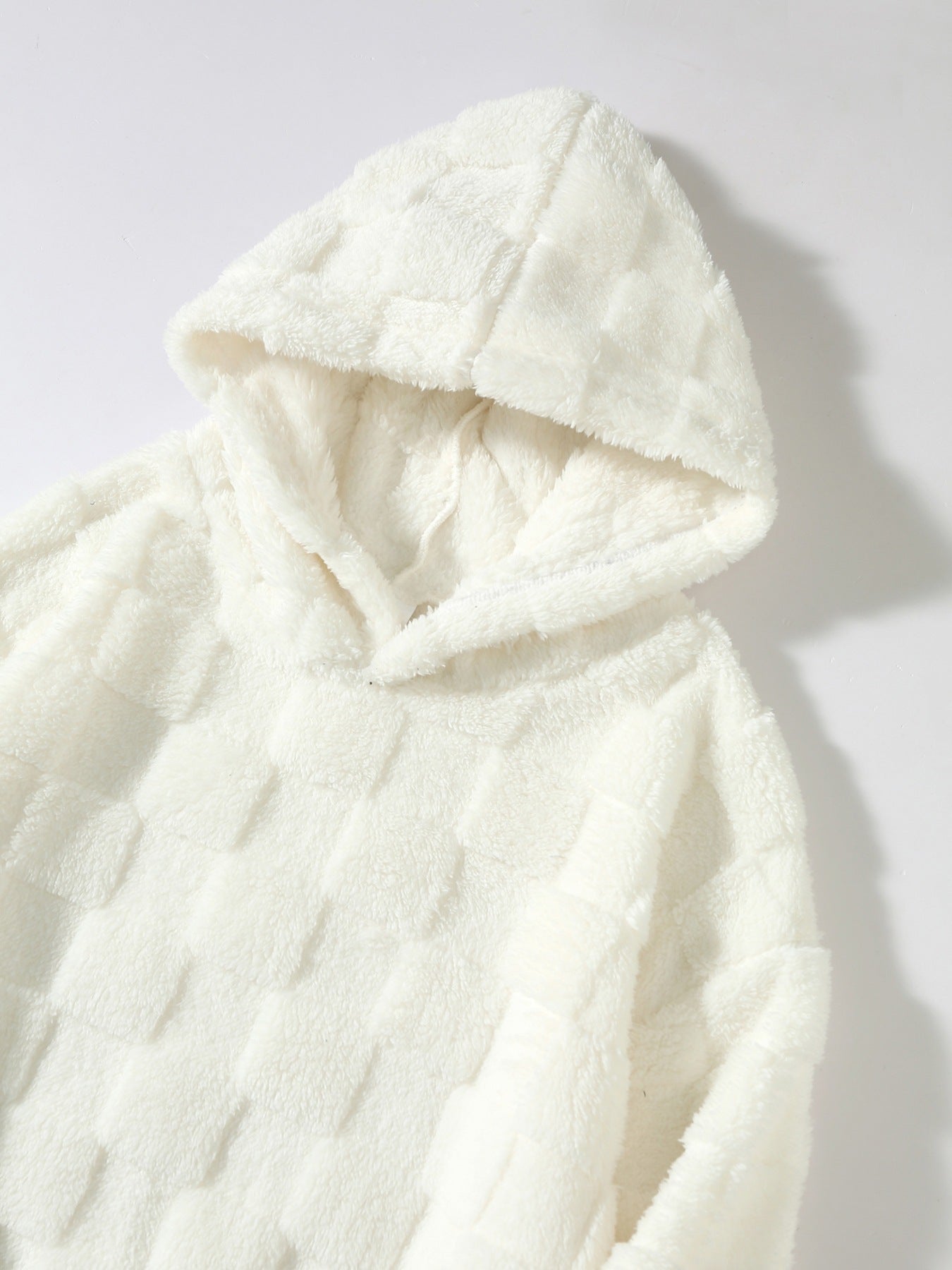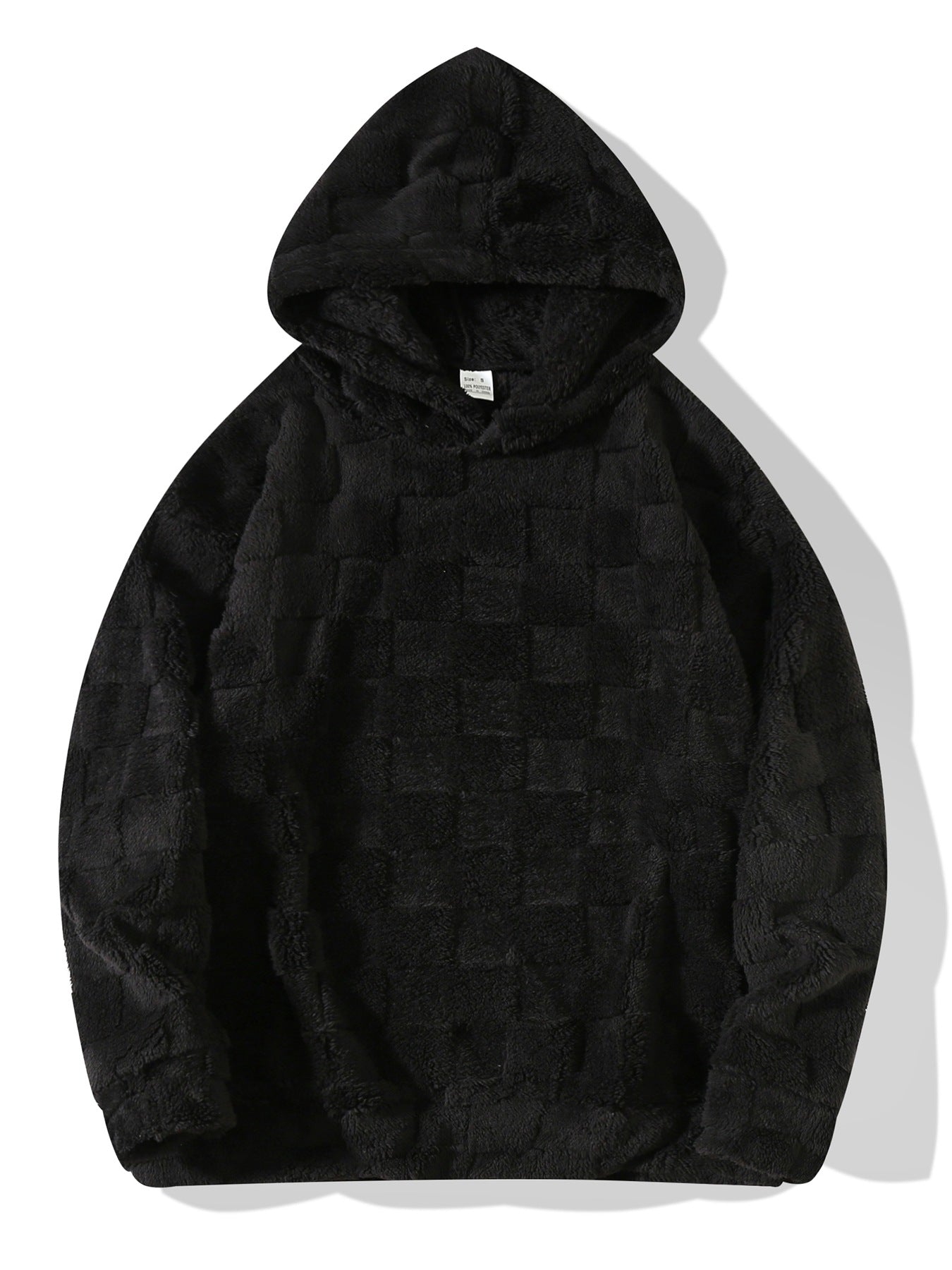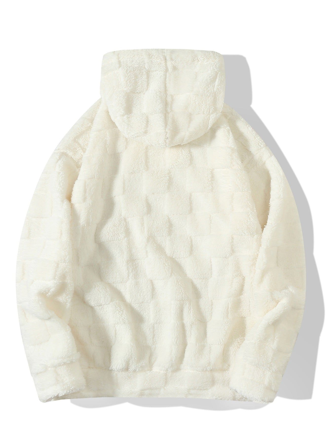 • Style: Solid Color Square Plaid Plush Hooded Sweatshirt