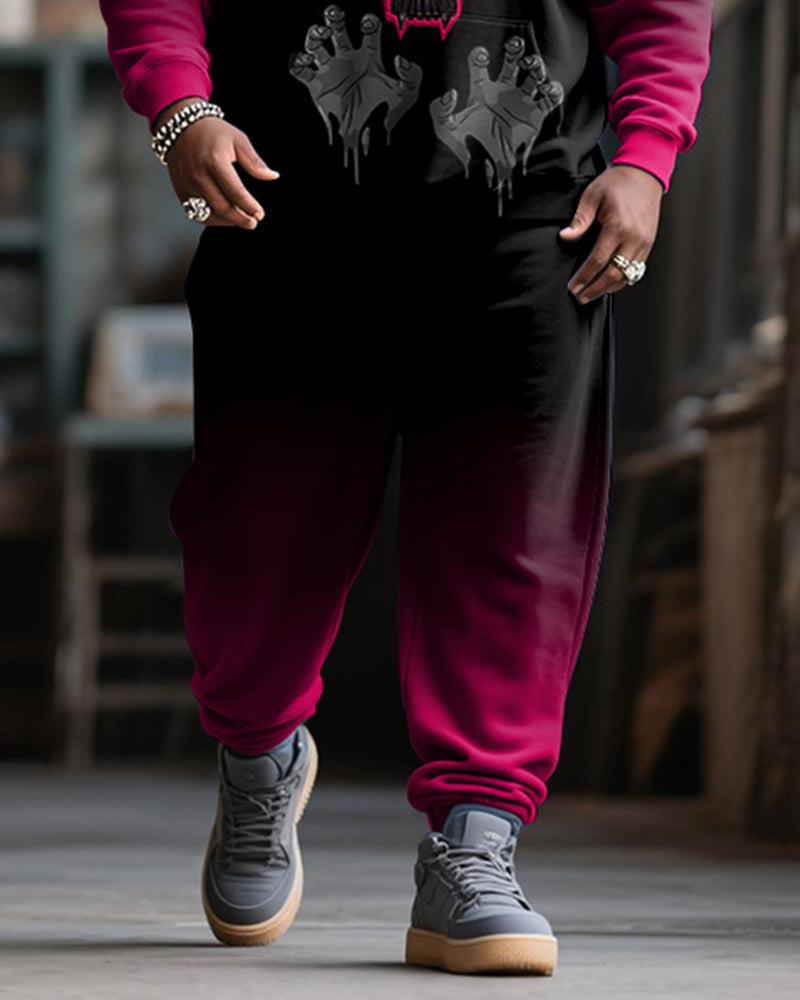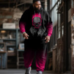 Big & Tall Men’s Street Fashion Gradient Rose Skull Print Hoodie Suit