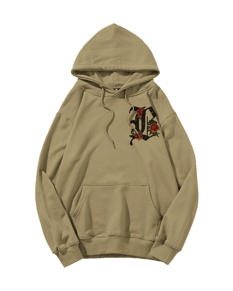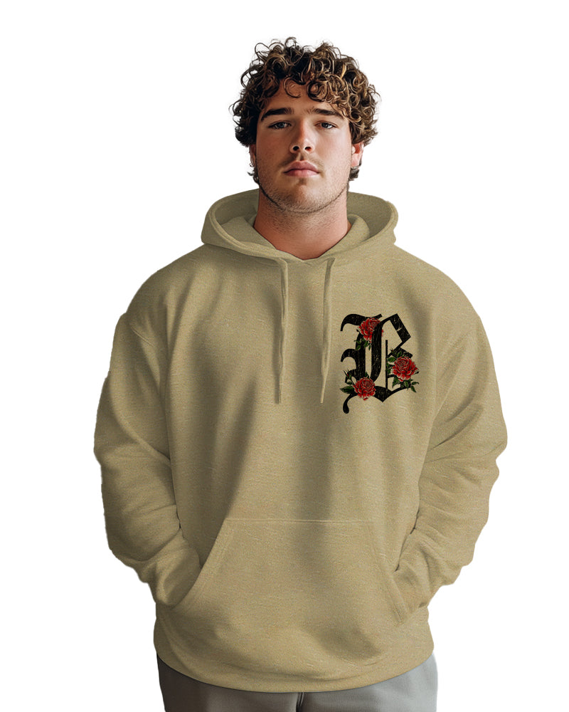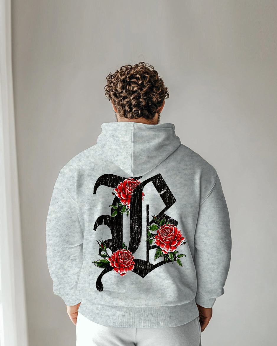 Romantic and stylish, this men’s hoodie is available in two color options. Crafted from soft cotton, it features gothic-style lettering beautifully entwined with rose motifs, adding a touch of charm. The relaxed fit and versatile design make it a standout choice for the modern gentleman who values both style and comfort. With its unique blend of retro and romance, this hoodie is more than just fashion—it’s a statement of personality.