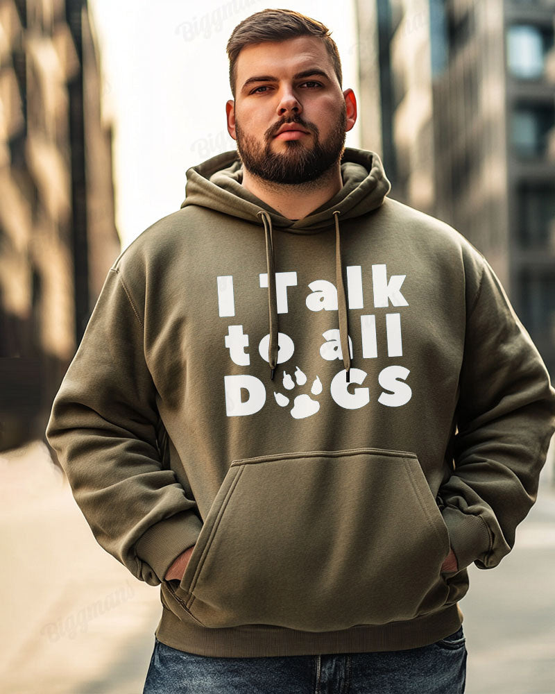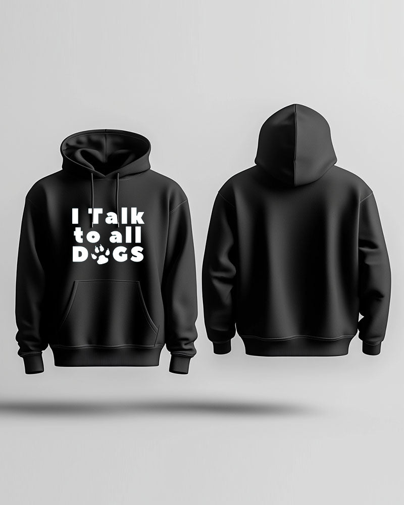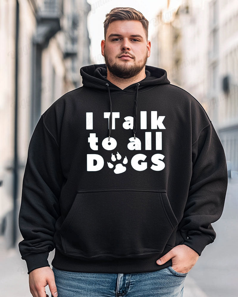 Cotton Material-I Talk To All Dogs Alphabet Paw Print Men’s Loose Oversized Hoodie