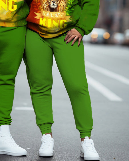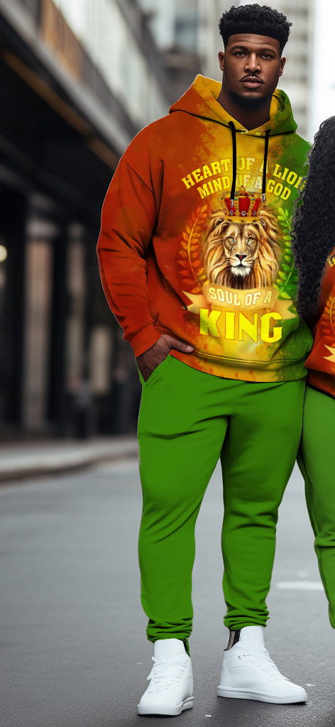 This brings a bold twist to matching outfits. Featuring a striking gradient design and a fierce lion print, it symbolizes strength and love fashionably. The loose and comfortable fit is ideal for cozy days, while the street-inspired vibe ensures you stand out.