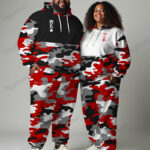 Make a statement with this couple’s matching big & tall hoodie set, featuring a red camo design paired with black-and-white color blocks. Designed with a relaxed yet flattering cut, the stretch fabric provides warmth without bulk, while the wrinkle-resistant finish ensures your street style stays sharp.