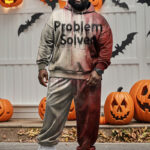 Halloween Blood Problem Monogram Print Hoodie Big Men’s Two-piece Set