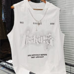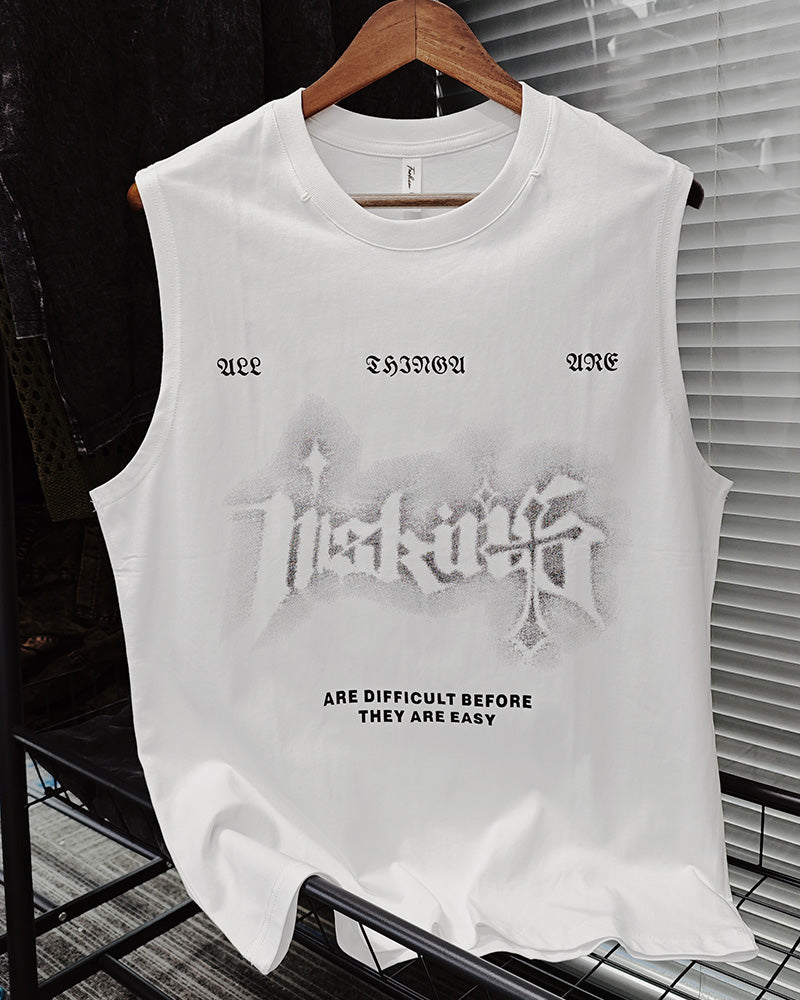 L-2XL Street Fashion White Chain Gothic Hee Letter Printed Round Neck Sleeveless Vest