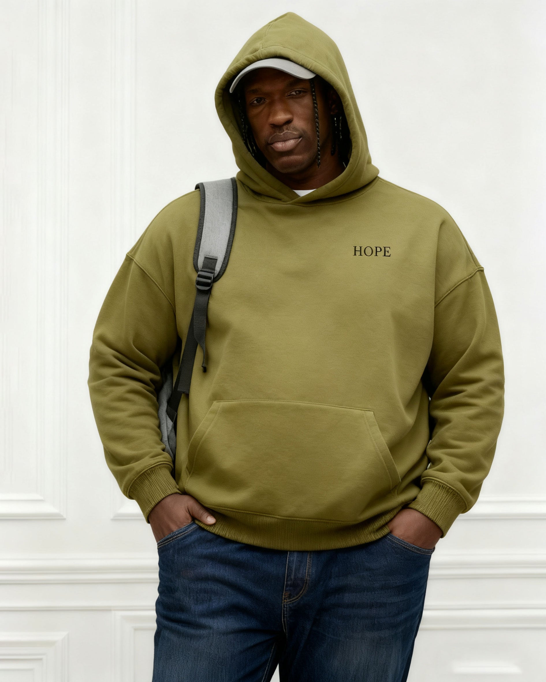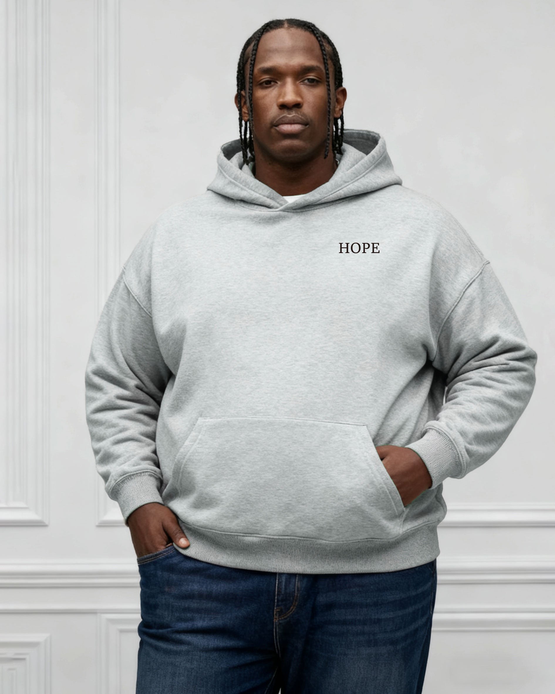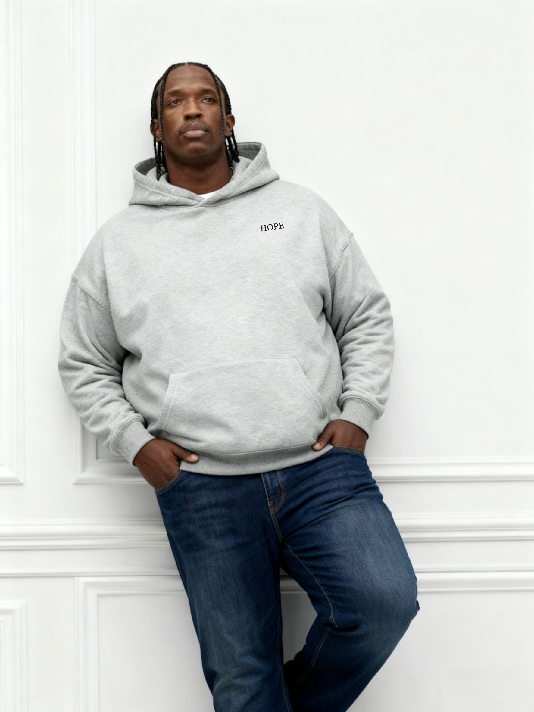 Large Size Men’s Autumn And Winter Warm Cotton Hoodie-gray Chest Handmade Three-dimensional Printing “hope” Slogan