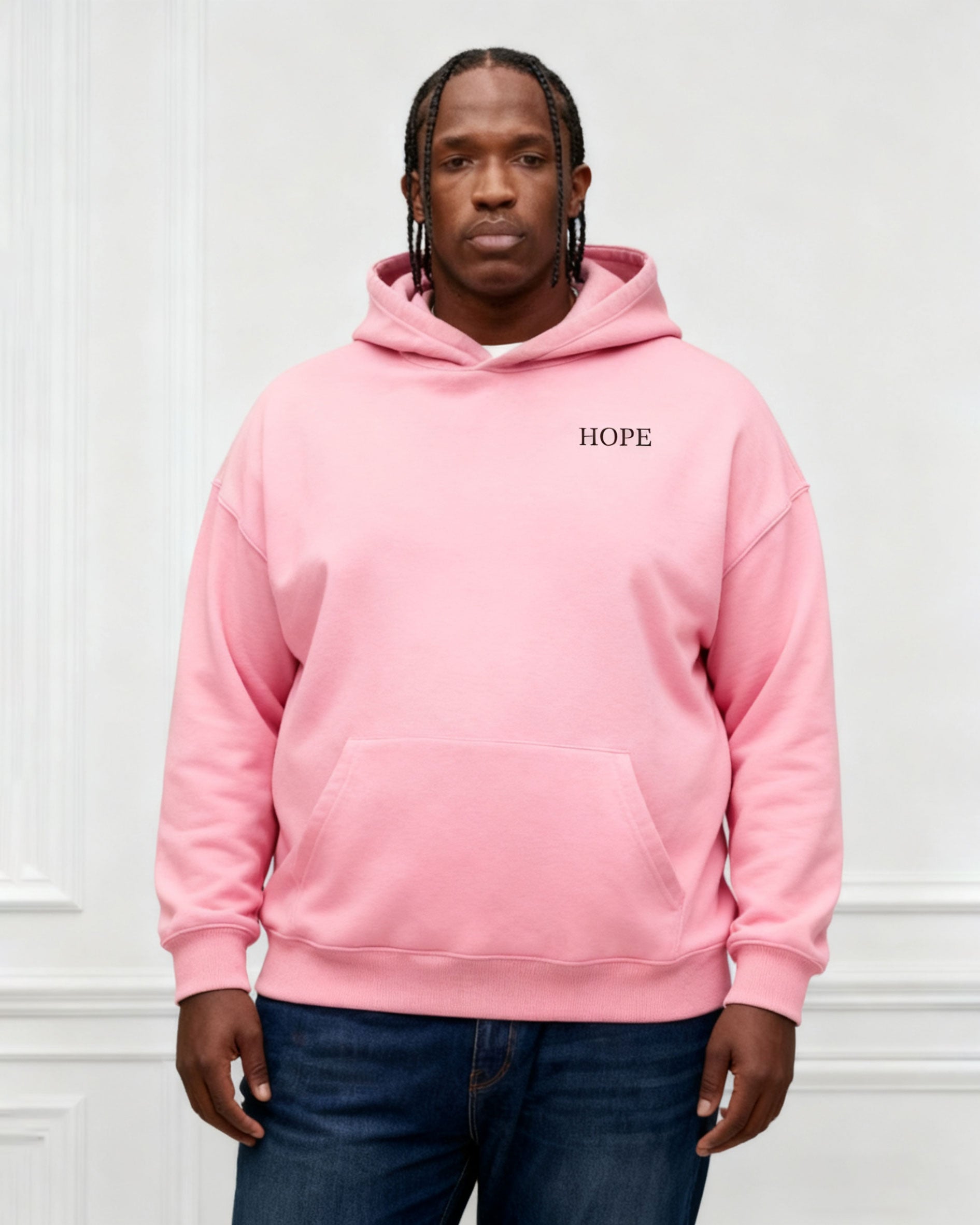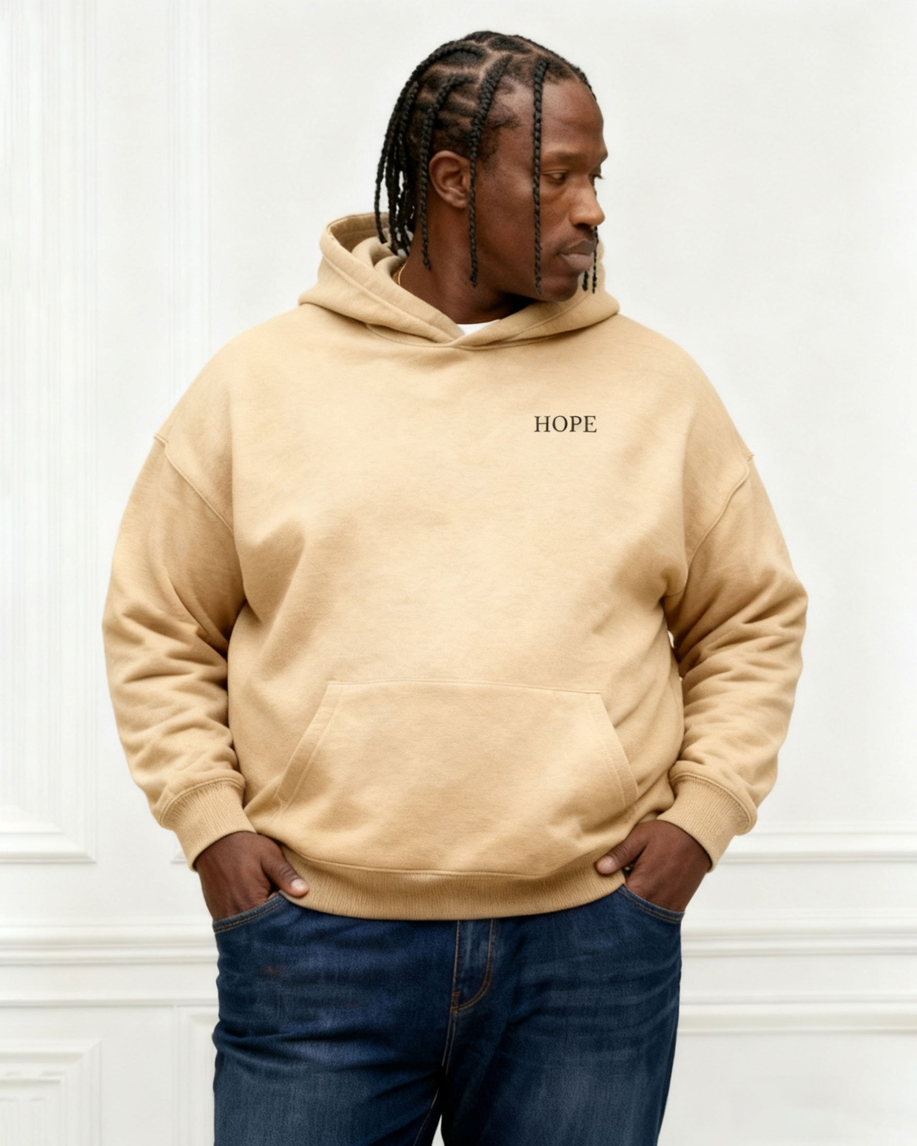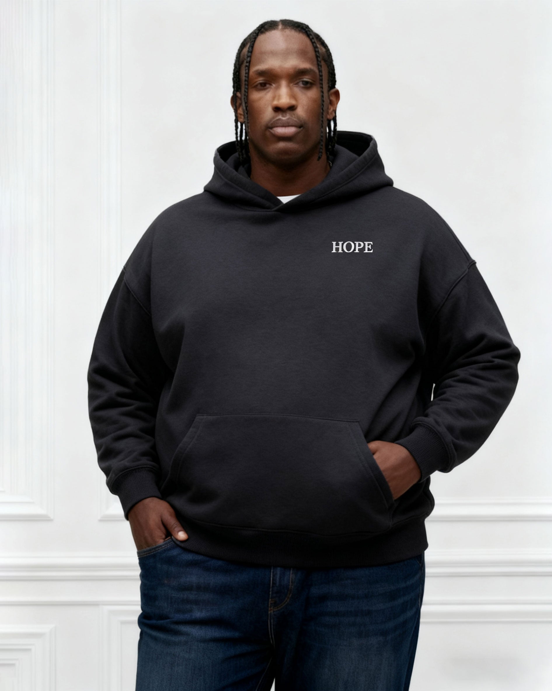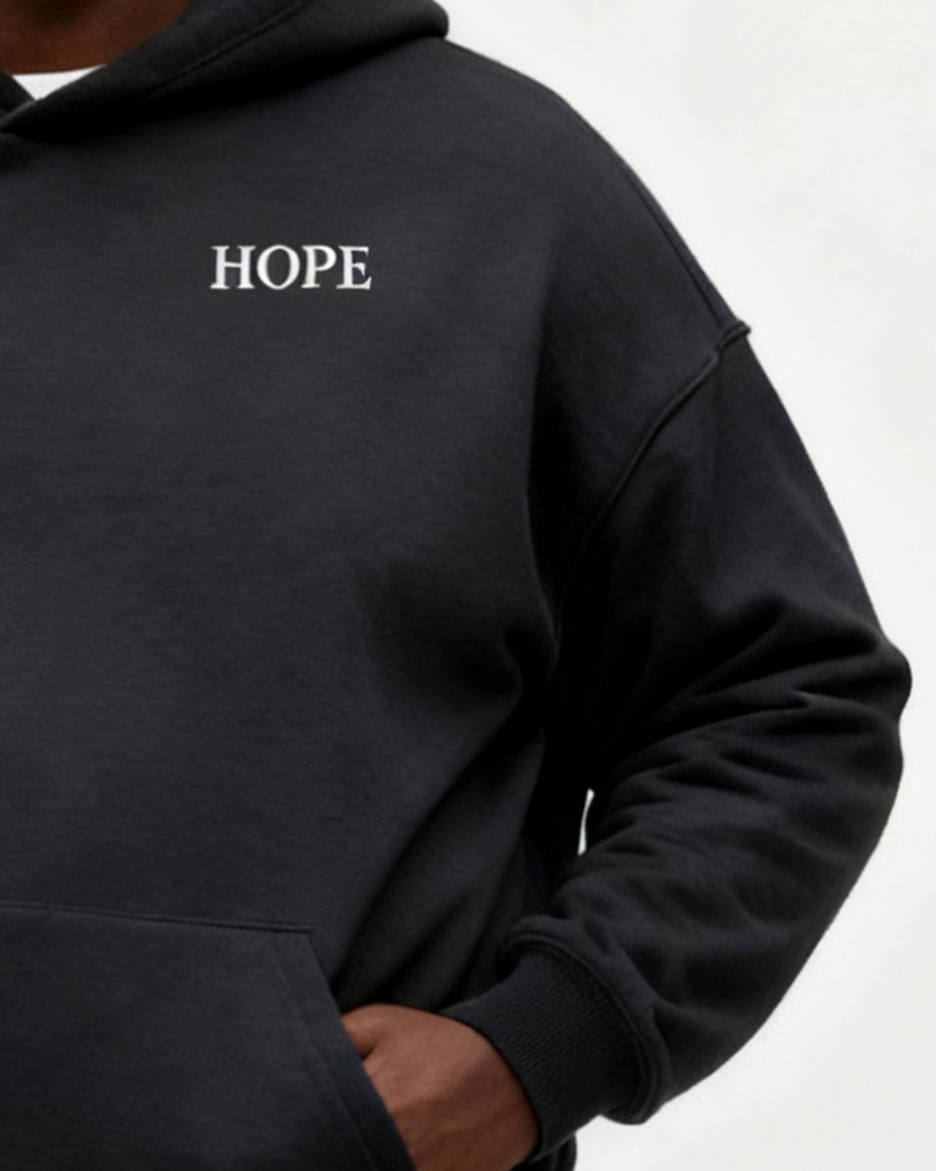 Large Size Men’s Autumn And Winter Warm Cotton Hoodie-gray Chest Handmade Three-dimensional Printing “hope” Slogan