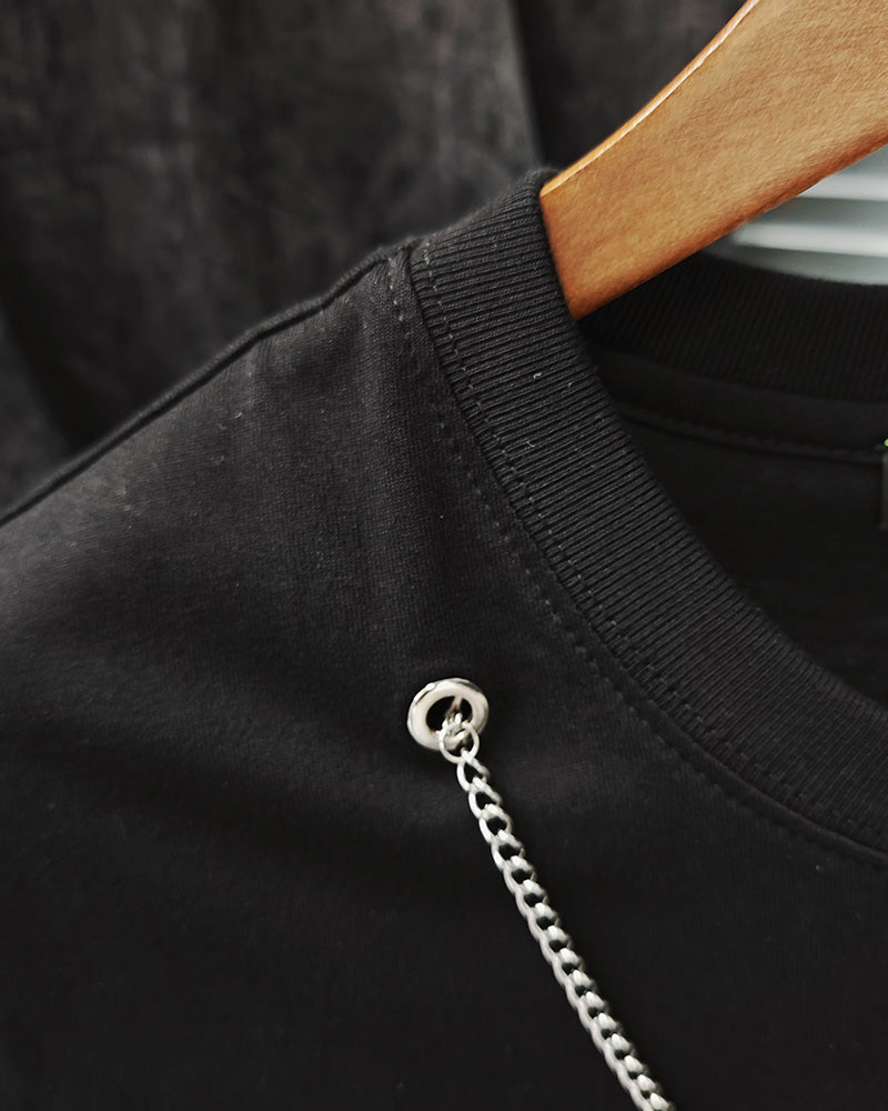 M-2XL Street Fashion White Chain Gothic Hee Letter Printed Round Neck Sleeveless Vest