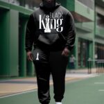 This big and tall black hoodie set blends style and comfort. The soft fabric and relaxed fit make it ideal for lounging or running errands. The simple yet striking chessboard print with lettering adds a touch of urban edge, making it a standout piece in any wardrobe.