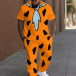 Do you like Fred Flintstone? This cute character inspires this two-piece set. The fun cartoon necktie print gives off a nostalgic movie vibe. Made from stretchy fabric for a comfortable, flattering fit, it’s perfect for movie lovers who want to showcase their unique flair and love for nostalgia.