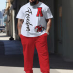 Men’s Big and Tall Letter Print Short Sleeve T-shirt and Pants Casual Set