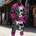 This hoodie set captures the essence of hip-hop fashion with a unique twist. The vibrant pink and bold skull details create a striking visual impact, turning heads in any crowd. Designed with a focus on street style, this is a versatile piece that elevates your look.