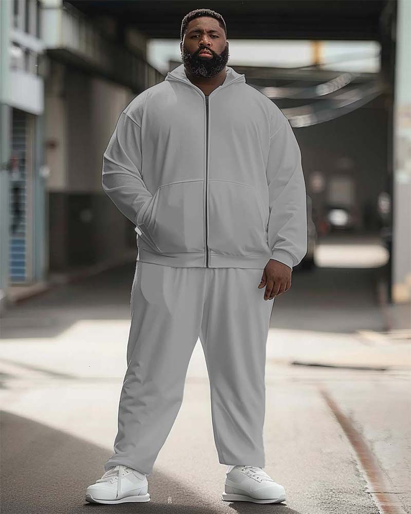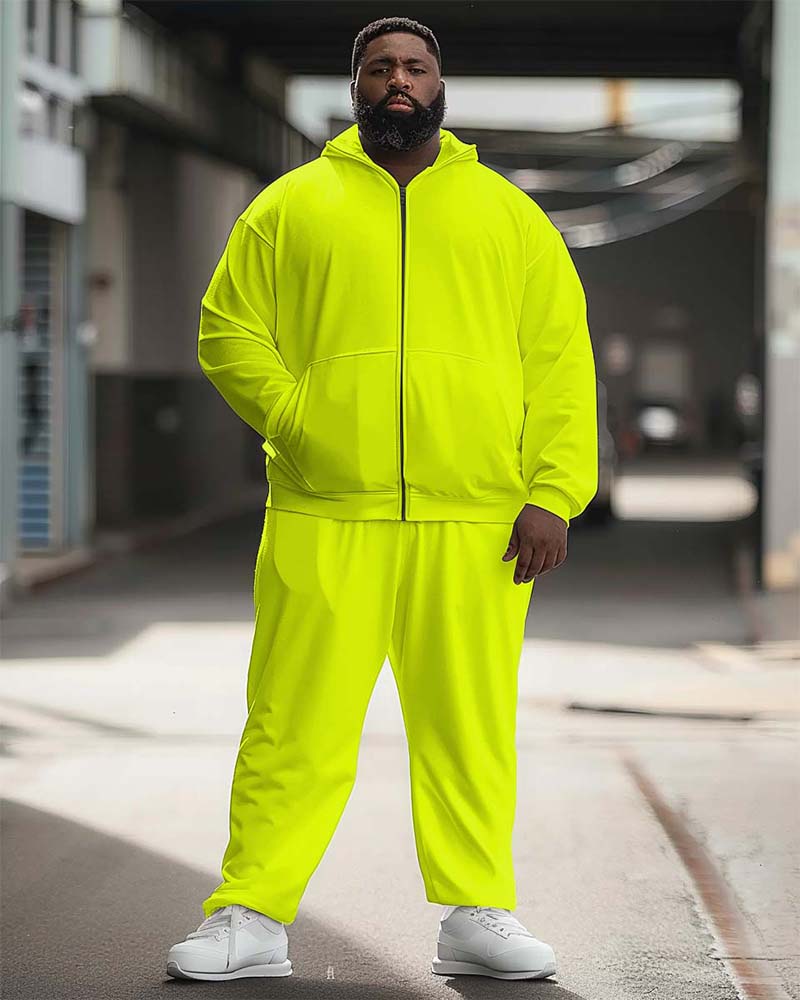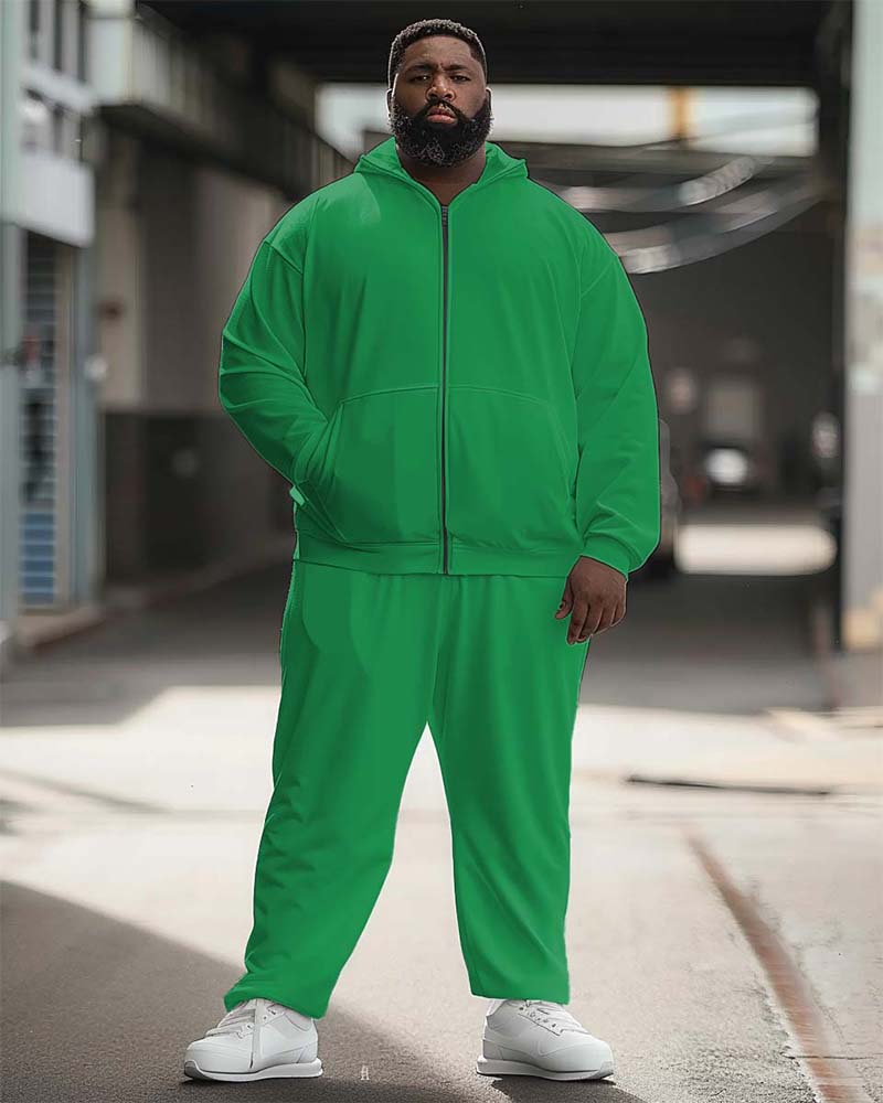 Men’s Big and Tall Solid Color Sport Zip Hoodie Set