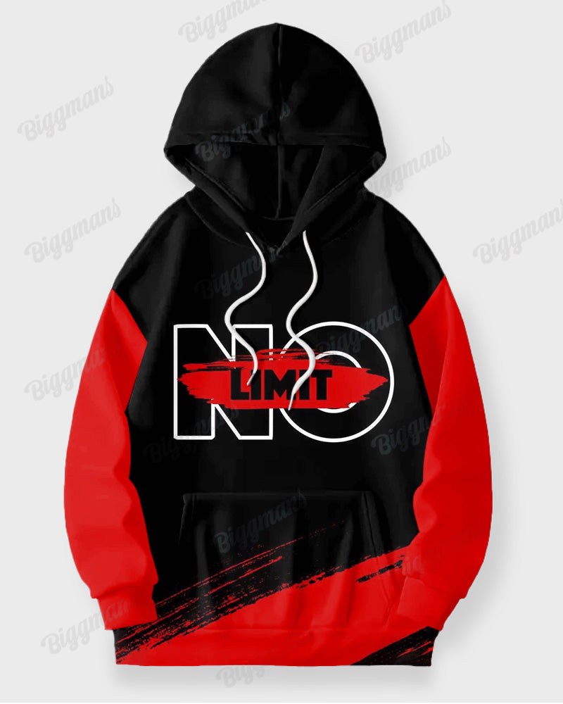 Embrace self-expression with this black hoodie set for big & tall men, featuring striking red color-block details and a standout “NO LIMIT” graphic print. The loose-fit set combines comfort with a powerful style statement. It pushes boundaries and showcases your individuality.