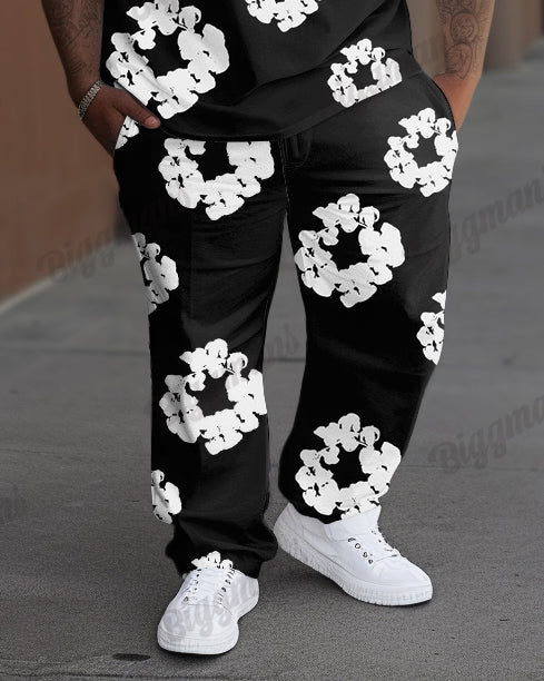 Minimal doesn’t mean boring. This big & tall men’s set strips it down with sleek black-and-white styling and a crisp cotton wreath print—perfect for warm-weather days when you want to look sharp without trying too hard. With soft, breathable fabric and a roomy cut, it’s your go-to for effortless summer cool.