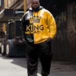 Stay stylish with our men’s big & tall black and yellow color-blocked hoodie set, featuring a bold “King” and  print. The simple yet fashionable design makes it an easy go-to for any casual occasion. Perfect for daily streetwear, this hoodie set offers comfort and style, ideal for a sleek and modern look.
